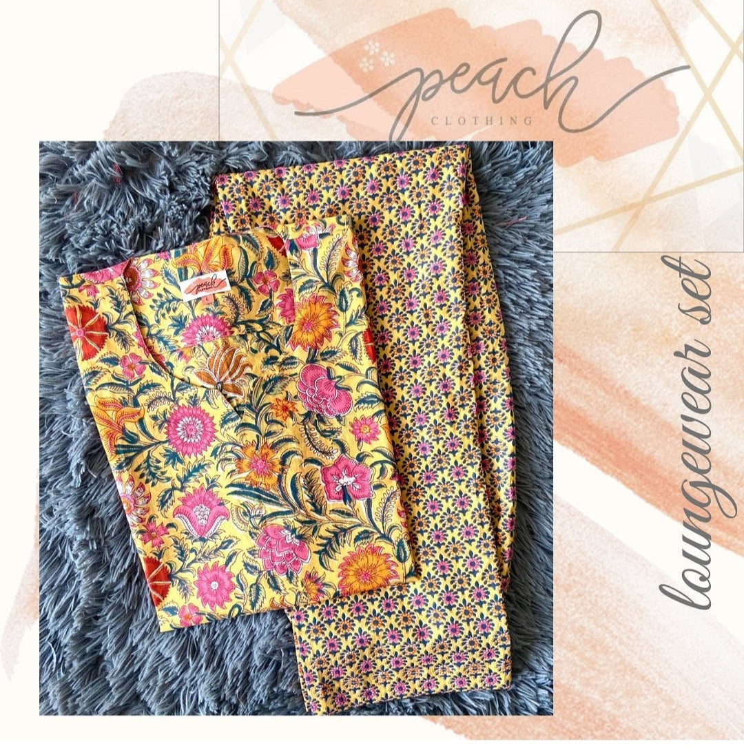 Introducing our Yellow Peony Co-ord Set, a delightful blend of charm and comfort. Adorned with hand block floral prints inspired by sweet peonies, this set radiates elegance and grace. Crafted from premium cotton, it enhances your loungewear collection with its sophisticated and timeless design.
